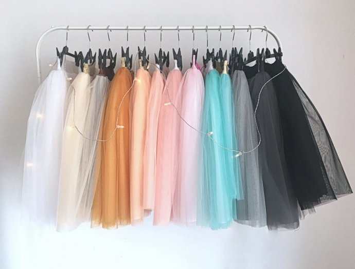 spódnica tiulowa MIDI w DOWOLNYM kolorze (biel, ecru, brzoskwinia, złoto, róż, mięta, srebro, popiel, czerwień, fuksja i czerń)