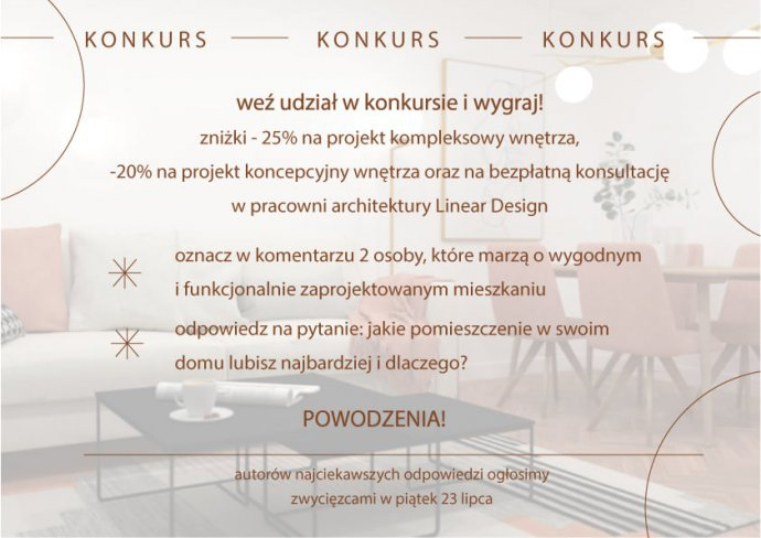 - 1 Miejsce: zniżką - 25 % na kompleksowy projekt wnętrza