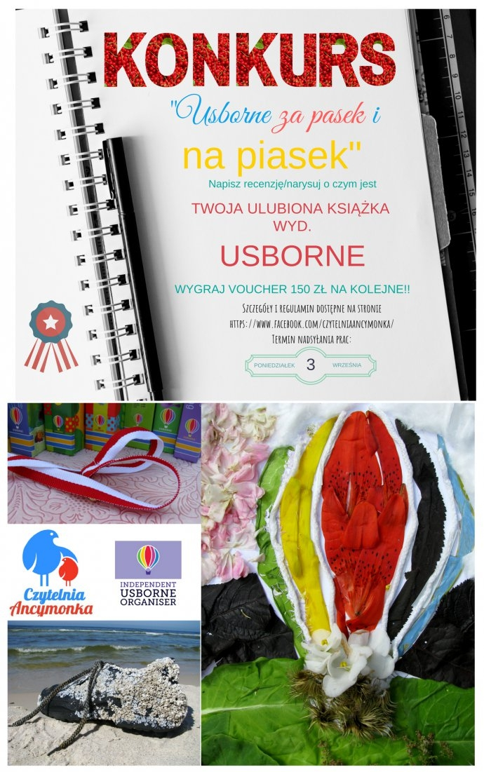 - Kategoria "na piasek" prześlij w komentarzu pod postem konkursowym na fb Czytelnia Ancymonka zdjęcie pracy plastycznej dotyczącej Twojej ulubionej ksiązki wyd. Usborne. Spróbuj wykorzystać naturalne materiały lub z recyklingu.
