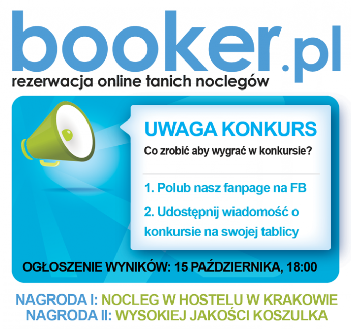 Wygraj weekend w Krakowie. Wystarczy, że polubisz naszego fanpage'a na FB i udostępnisz posta o konkursie na tablicy i masz szanse na wygranie weekendu w Krakowie. To takie proste. Rozdajemy również koszulki jako bagrody pocieszenia.