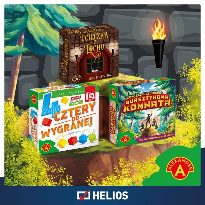 dwa ekstra zestawy gier: Ucieczka z lochu, Cztery do wygranej oraz Bursztynowa Komnata.
