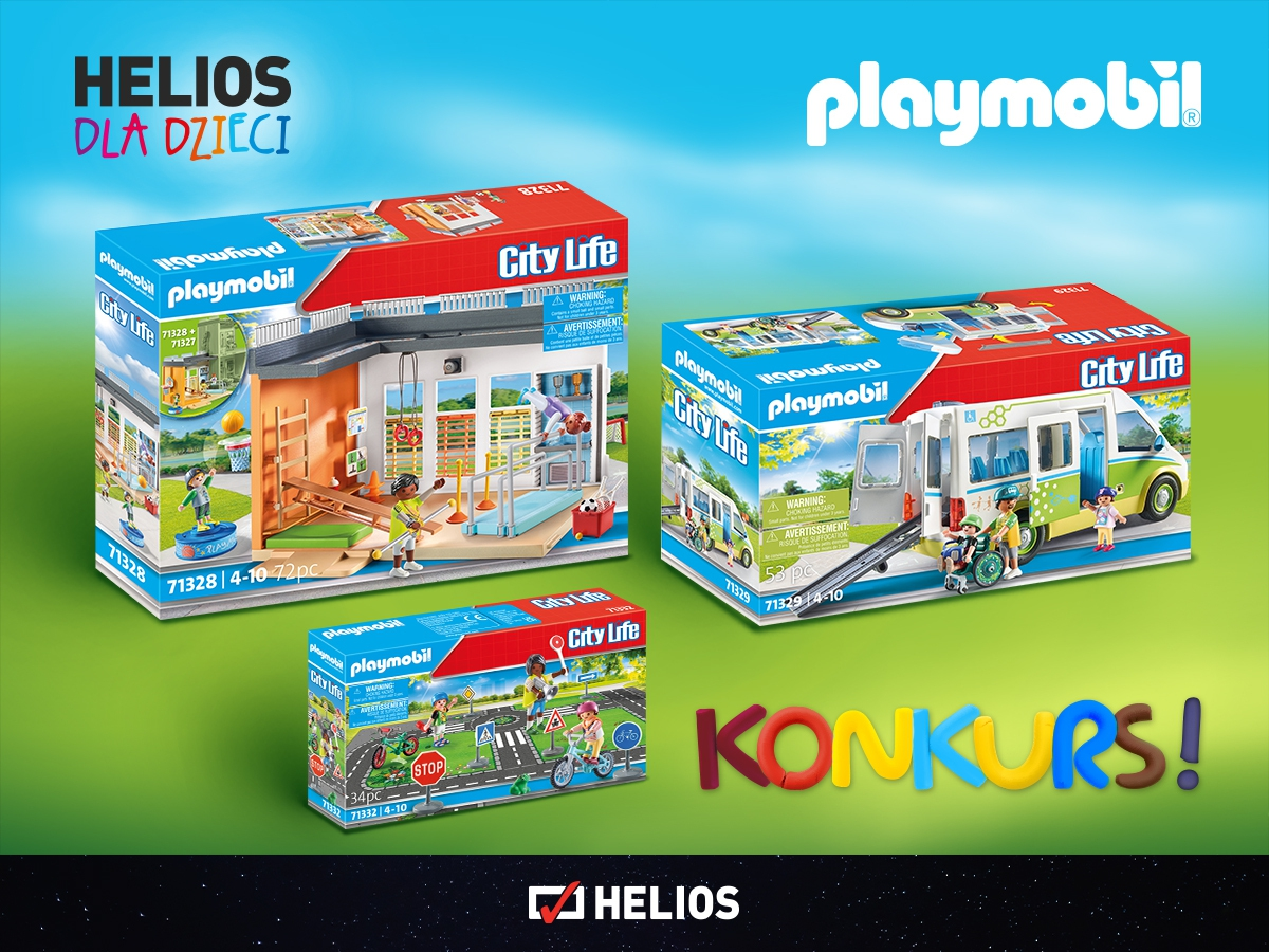 Aby wziąć udział w zabawie i spróbować wygrać jedną nagród widocznych na grafice ułóżcie krótką (max 4 zdania) rymowankę w której wykorzystacie słowa: WAKACJE, SZKOŁA oraz PLAYMOBIL