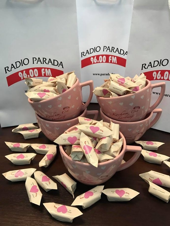 zaproszenie do restauracji Pod Jabłonką oraz kubek z limitowanej edycji Radia Parada