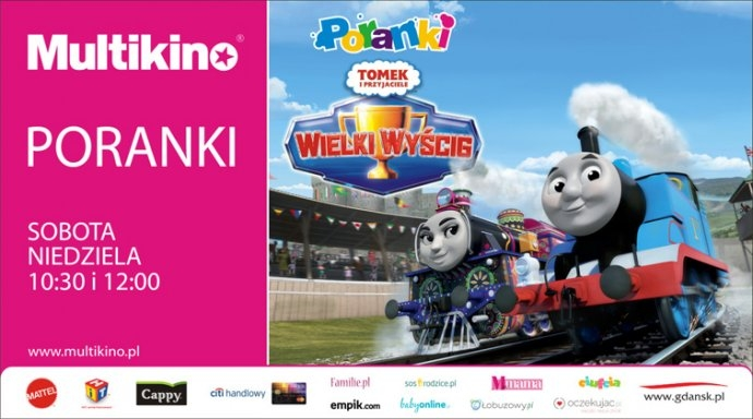 zaproszenie na film "Tomek i przyjaciele: Wielki wyścig" w dniach 5-6 listropada w Multikinie (al. Zwycięstwa 14, Gdańsk).