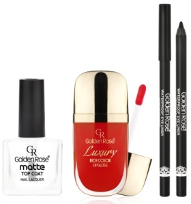 5 zestawów kosmetyków do makijażu Golden Rose. Każdy zestaw składa się z: