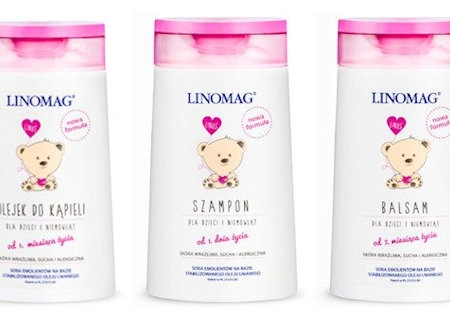 - Zestaw Linomag: Balsam od 7. miesiąca życia, Olejek do kąpieli od 1. miesiąca życia, Szampon od 1. dnia życia oraz zestaw gadżetów