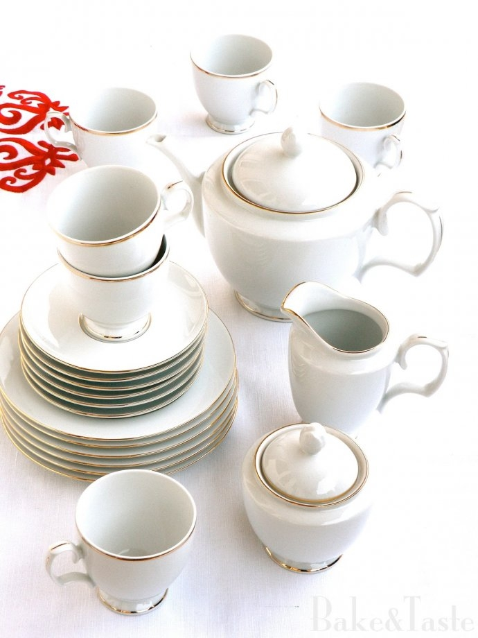 trzy zestawy kawowowe porcelany MariaPaula Złota Linia na sześć osób