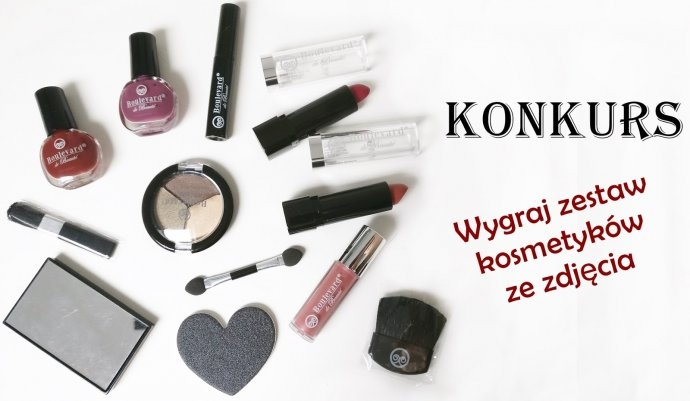 zestaw kosmetyków ze zdjęcia. Znajdziecie tam lakiery do paznokci, błyszczyk, cień do powiek, mini tusz do rzęs, pomadki do ust, pędzelki do makijażu w mini wersji, pilniczek w kształcie serca i bransoletkę