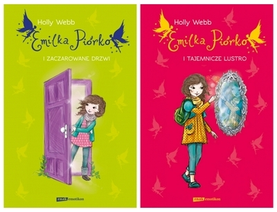 3 zestawy książek o Emilce Piórko, zawierające 2 pierwsze części: "Emilka Piórko i zaczarowane drzwi" oraz "Emilka Piórko i tajemnicze lustro" ufundowane przez Wydawnictwo Znak