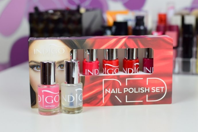 Zestaw lakierów Indigo (5 lakierów w odcieniach czerwieni, top oraz odżywka)