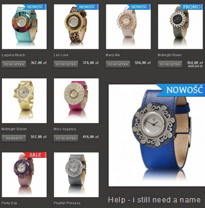3. Zostaw komentarz na stronie i wymyśl nazwę dla niebieskiego zegarka Deja vu ze zdjęcia (zegarek teraz ma nazwę „Help – I still need a name”).