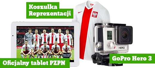 3x Nagroda I rzędu – zestaw składający się z: 1 oficjalny tablet Reprezentacji Polski w piłce nożnej, 1 koszulka Reprezentacji Polski w piłce nożnej, 1 piłka Nike, 1 szalik kibica, 1 zestaw szkolno-papierniczy Reprezentacji Polski w piłce nożnej, o łącznej wartości 992,40 zł;