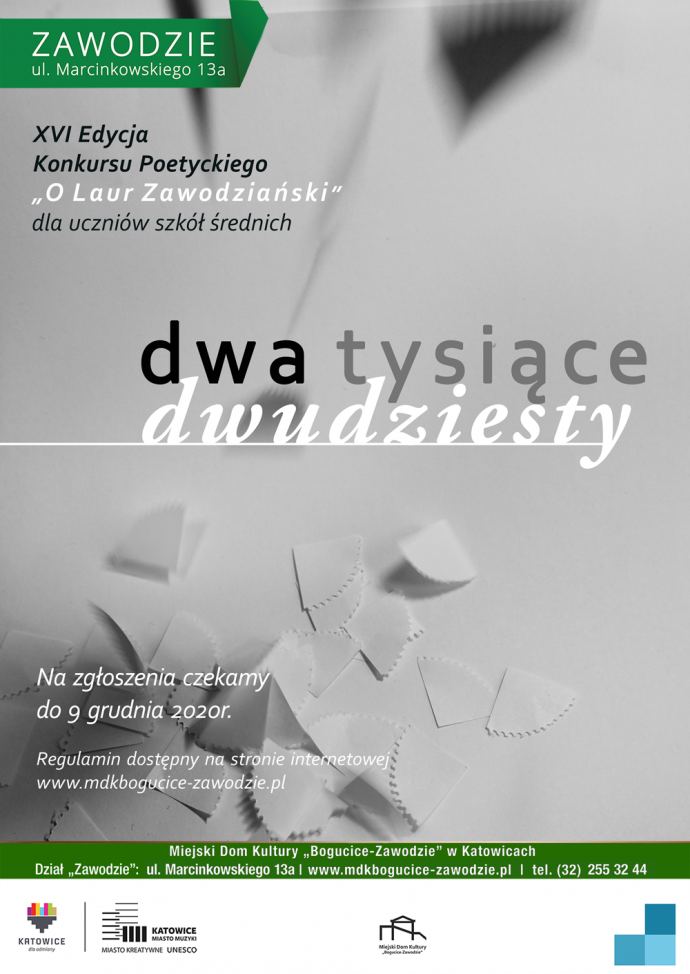 Zapraszamy do wzięcia udziału w XVI EDYCJI OGÓLNOPOLSKIEGO KONKURSU POETYCKIEGO „O LAUR ZAWODZIAŃSKI” pod hasłem „DWA TYSIĄCE DWUDZIESTY”.