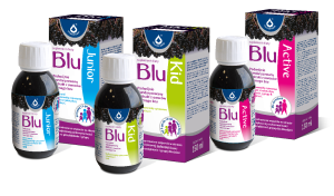 Pięć zestawów suplementów diety Blu Oleofarm dla całej rodziny.