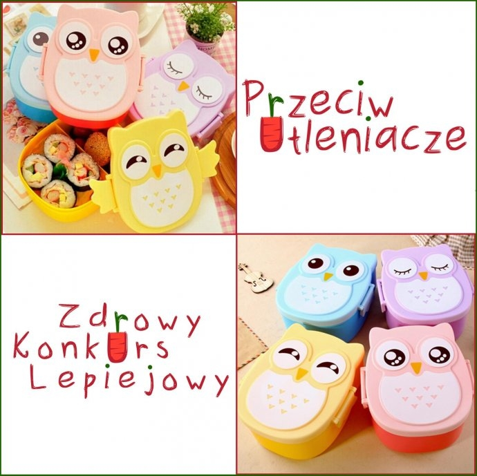 do wygrania w każdej edycji: urocze sówkowe pojemniki na lunch w czterech kolorach!